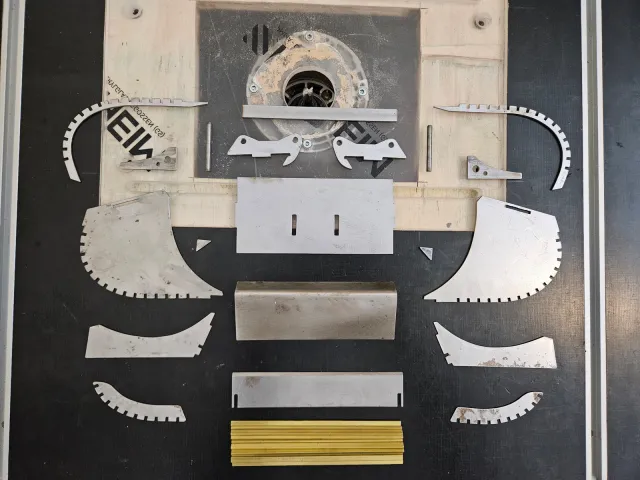 Im ersten Schritt wurden die Seitenwangen, die Zwischenstreben und der Adapter für den Schnellwechsler gefertigt,